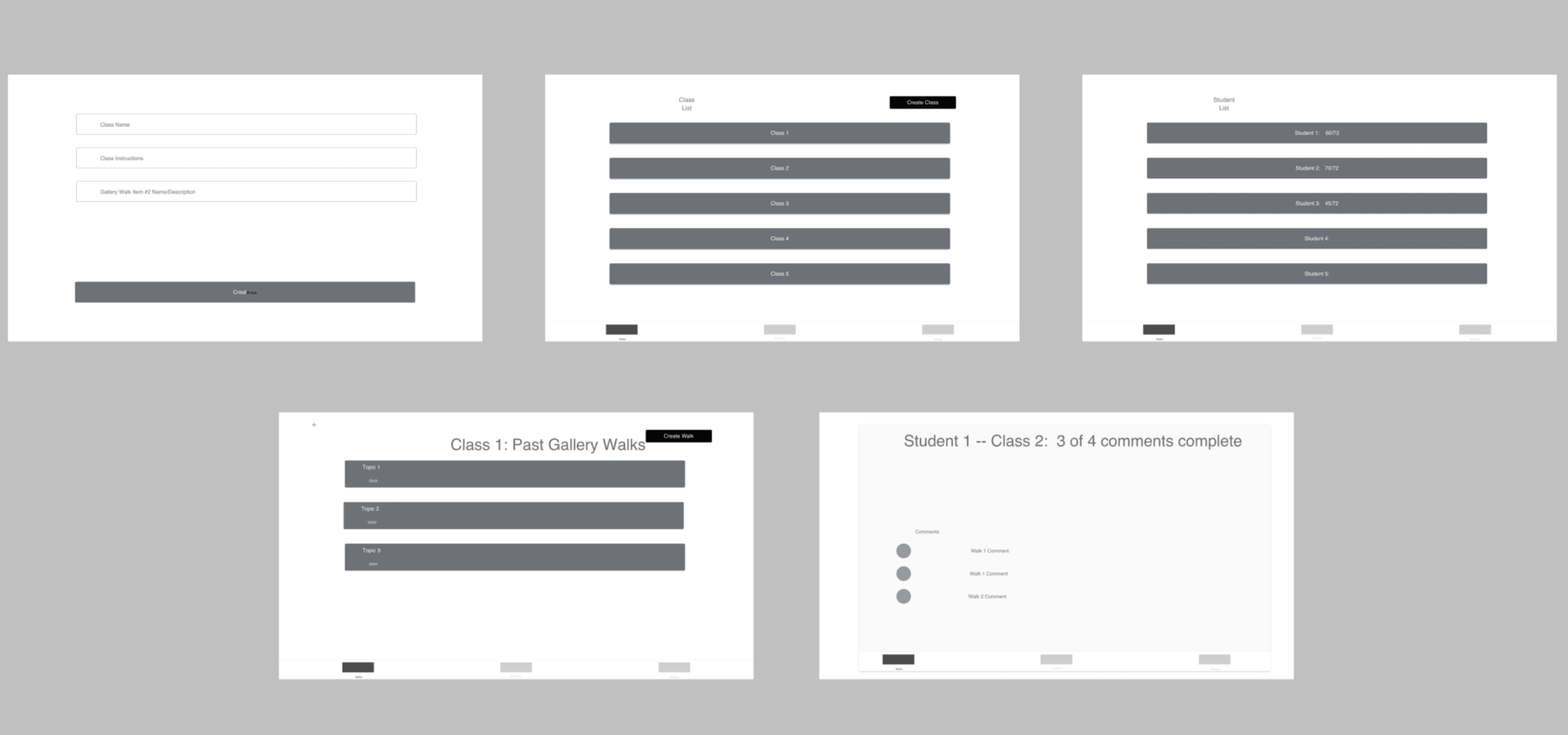 Desktop (Teacher) Wireframes
