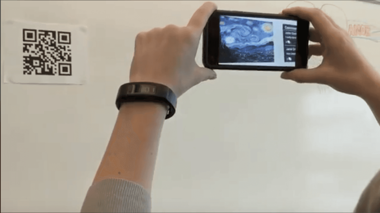 Teachers can simply print QR codes from the TeachAR website and stick them up around their classrooms. This gives teachers virtually an unlimited amount of content to use for gallery walks. Students can then use their smart phone devices to reveal the content and post comments.